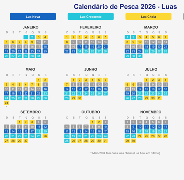 A pesca de qualidade depende da lua para o sucesso do pescador. Confira abaixo as melhores fases de pesca para o ano de 2026.