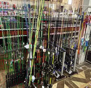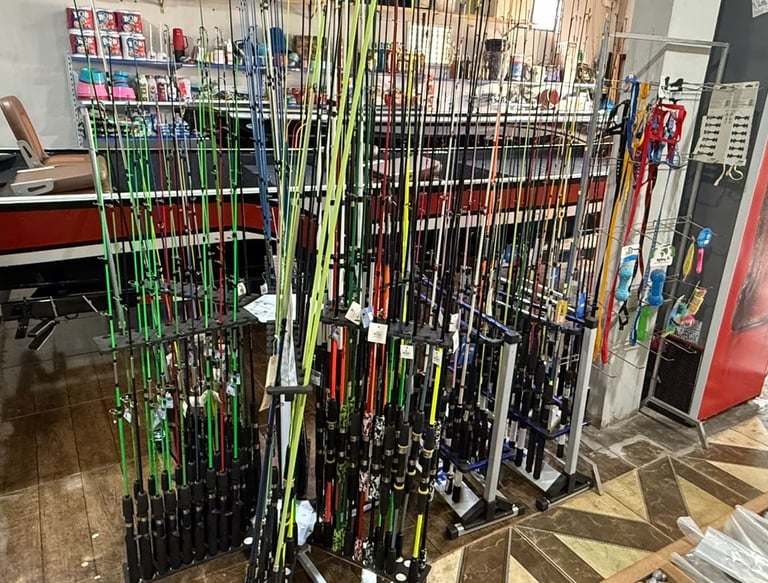 Toda "traia" para o bom pescador você encontra aqui: barcos, motores, iscas, varas, linhas, etc.